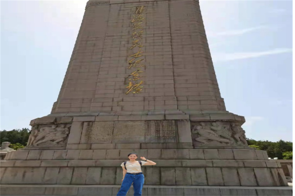 第三站,党员葛蕾自行参观了淮海战役纪念塔。2021年正值建党一百周年,葛蕾同志怀着激动的心情参观了淮海战役纪念馆,并有了深刻的感想。“纪念塔上那一行行革命烈士的名字令我感到深深的震撼,我深刻感受到在那个战火纷飞的岁月里,共产党员的奋力拼搏和人民大众的无私奉献精神。这次的参观让我的心灵得到了彻底的洗礼,如今的幸福生活来之不易,作为新时代的青年党员,我们应勇于承担民族复兴大任,坚定共产主义信念,不忘初心,砥砺前行,充分发挥党员的先锋模范作用。”