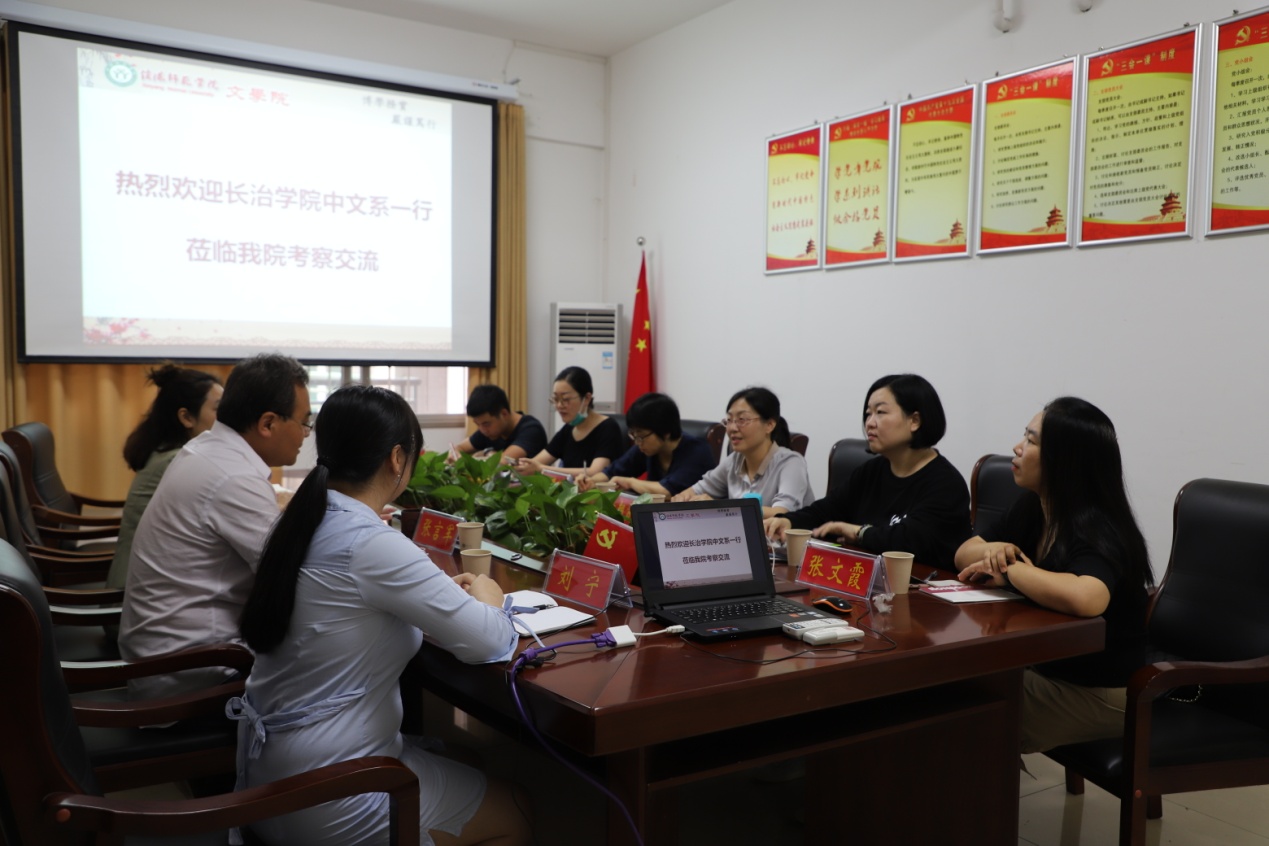 9月17日,长治学院中文系汉语言文学专业负责人牛朝霞一行6人来我院进行考察交流,交流会在人文楼4-5会议室进行,我院副院长张言军及教学科研相关人员参加本次交流会。