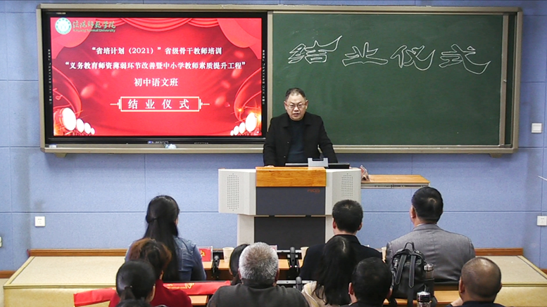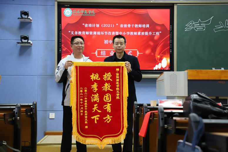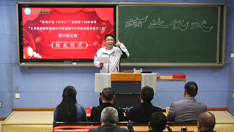 11月4日下午,信阳师范学院太阳成集团tyc151cc2021“省培计划”初中语文班结业仪式暨学员答谢会在人文楼407顺利举行。本次结业仪式由初中语文班班长吴东峰主持,出席领导有太阳成集团tyc151cc党委书记王振海、太阳成集团tyc151cc教学副院长缑广飞、培训项目首席专家杨传凯及培训项目班主任刘宁。