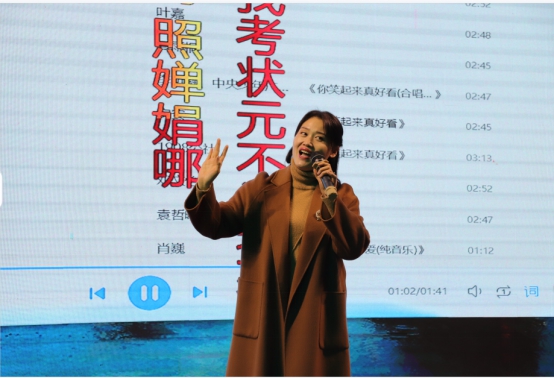 在欢乐的气氛中,学员们纷纷一展歌喉。《唱支红歌给党听》、《真心英雄》、《驼铃》、《一路向北》等歌曲扣人心弦,观众听得心潮澎湃。多位老师被现场气氛感染,即兴唱起了《刀剑如梦》、《戏说人生》、《黄种人》等歌曲,更有老师带来了一曲黄梅戏《女驸马》。