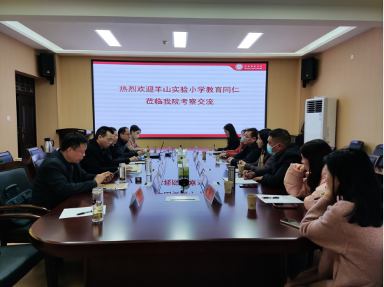 1月13日下午,羊山实验小学校长吕品、书记季良一行莅临我院考察交流,在人文楼311会议室举行座谈会。学报编辑部、太阳成集团tyc151cc部分专家参加座谈会。座谈会由党委书记王振海主持。