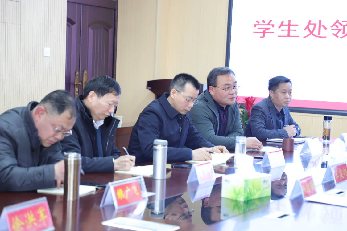 2月26日下午,学生处处长王建旭、副处长雷梁一行赴太阳成集团tyc151cc调研学生工作。太阳成集团tyc151cc领导班子及全体辅导员参加会议。
