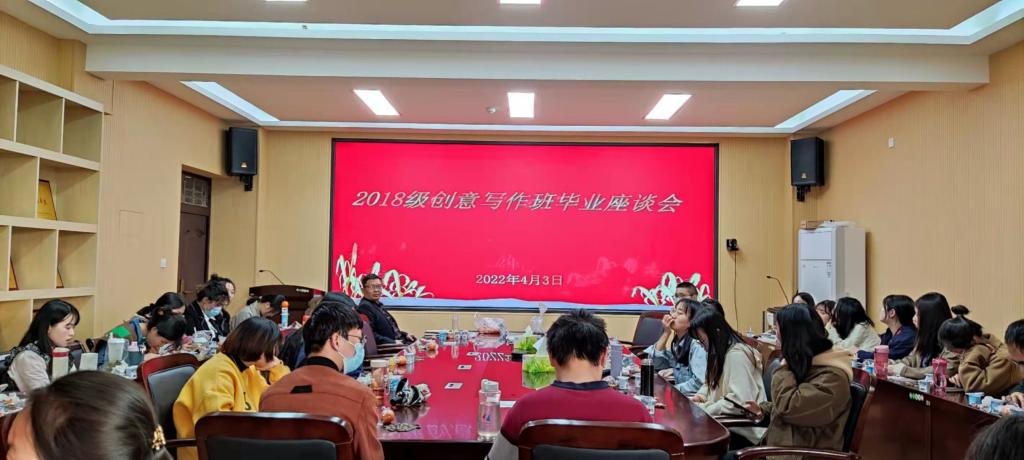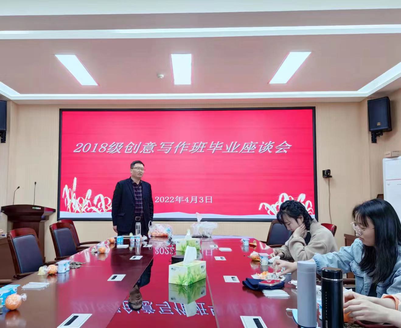 4月3日下午,太阳成集团tyc151cc2018级创意写作班班级毕业座谈会在人文楼3楼会议室顺利举行。座谈会由班主任徐洪军老师主持,全体学生参加此次座谈会。