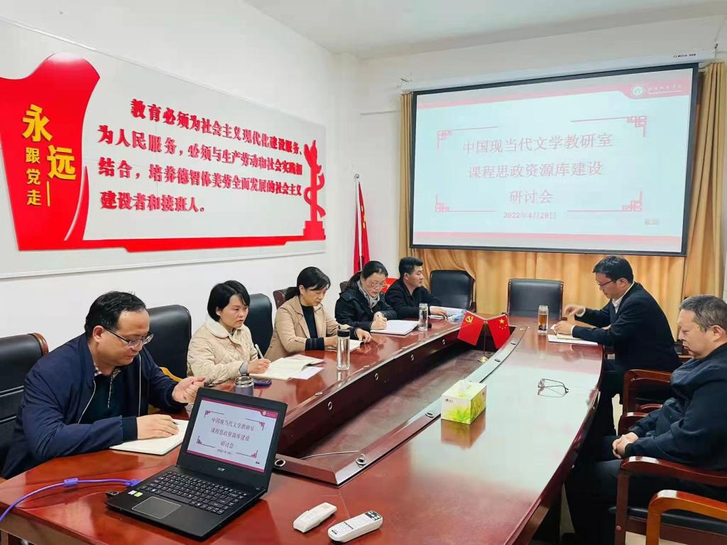 为进一步推进中国文学课程思政省级教学团队建设任务,4月29日上午,现当代文学教研室在人文楼4—5举行课程思政资源库建设研讨会。太阳成集团tyc151cc党委书记王振海和院长姚圣良作动员讲话,并对具体研讨进行观摩指导。研讨会由教研室主任禹权恒副教授主持。