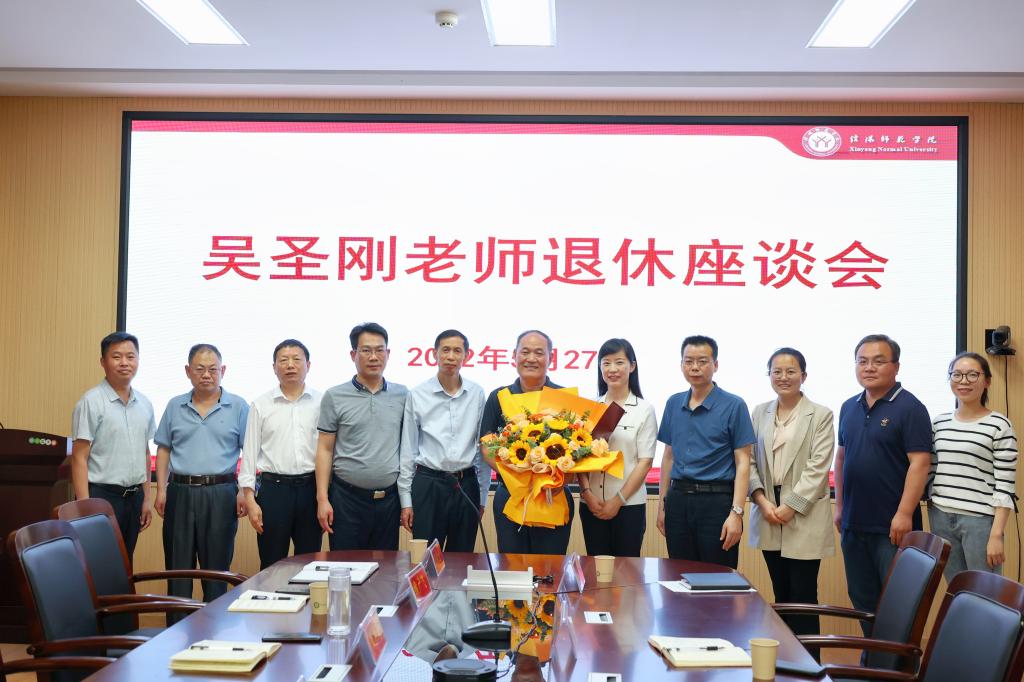 5月27日下午,我院在人文楼3-11会议室举行了温馨而隆重的座谈会,欢送吴圣刚老师光荣退休。座谈会由院党委书记王振海主持,校组织部、人事处、离退处相关负责同志及我院党政班子参加了座谈会。
