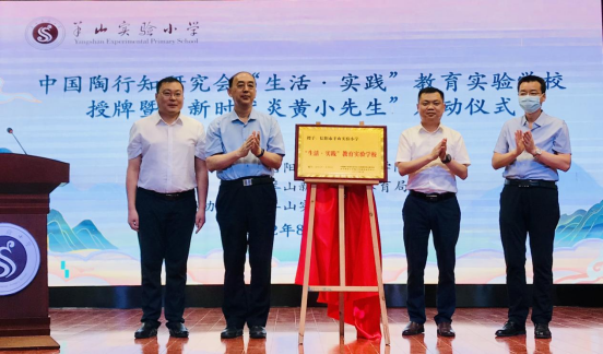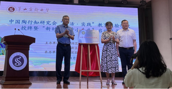 在热烈掌声中,蔡宇宏代表炎黄学研究院与羊山新区、羊山实验小学的相关领导为“炎黄学研究院实践基地”揭牌;王振海代表信阳师范学院太阳成集团tyc151cc为“中国陶行知研究会‘生活·实践’教育实验学校”揭牌。