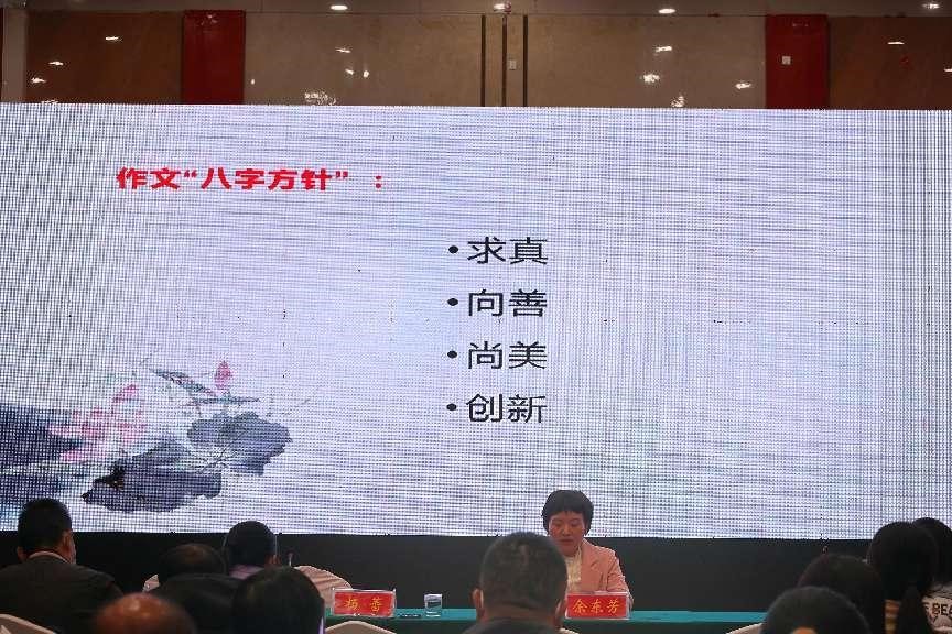 此次教学微论坛以“中招作文如何得高分?”为主题。如何提高学生的作文水平,探索初中作文高效课堂,一直是语文老师所探索和切实关心的问题,是初中语文教研重点。余东芳老师秉持着理论与实践相结合的理念,提出了作文“八字方针”,强调了写作时的“九个失误与不足”以及高分作文的“四个亮点”,重点对现阶段初中生中考中如何快速作文进行了梳理与建议,以期推动作文教学成效,推动学生核心素养的全面发展。