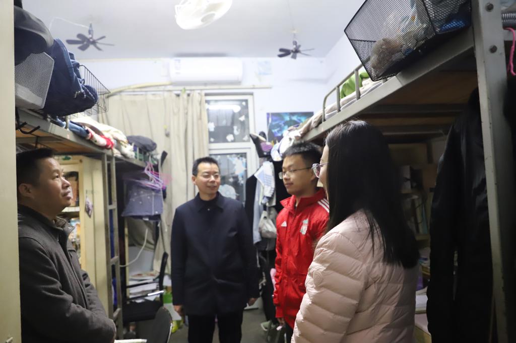 11月30日下午,太阳成集团tyc151cc党委书记王振海、副书记王家宏和毕业生辅导员郭子悦一行前往太阳成集团tyc151cc考研专用自习室、学生宿舍、餐厅看望我院留校考研学生。