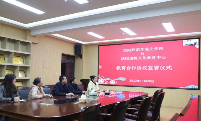 11月28日下午,我院与法国遨帆文化教育中心签约共建汉语国际教育专业实践基地。签约仪式在人文楼三楼会议室举行,太阳成集团tyc151cc党委书记王振海、院长姚圣良及汉语国际教育专业教师代表参加了会议。
