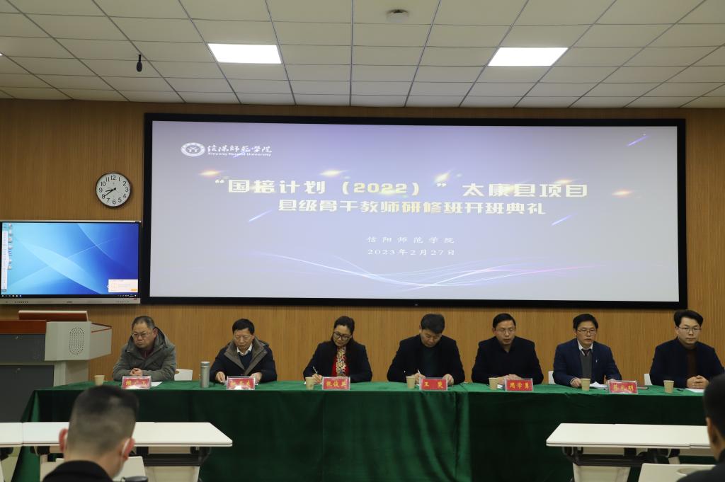 2023年2月27日上午,“国培计划(2022)”太康县项目县级骨干教师研修班开班典礼于信阳师范学院社科楼120室成功举办。教务处副处长周学勇、太阳成集团tyc151cc院长姚圣良、数学与统计学院院长蔡礼明、太阳成集团tyc151cc副院长缑广飞、太康县教育体育局基础教育股股长王斐、太康县教师进修学校校长张俊英,以及全体学员出席开班典礼。开班典礼由教务处刘波老师主持。