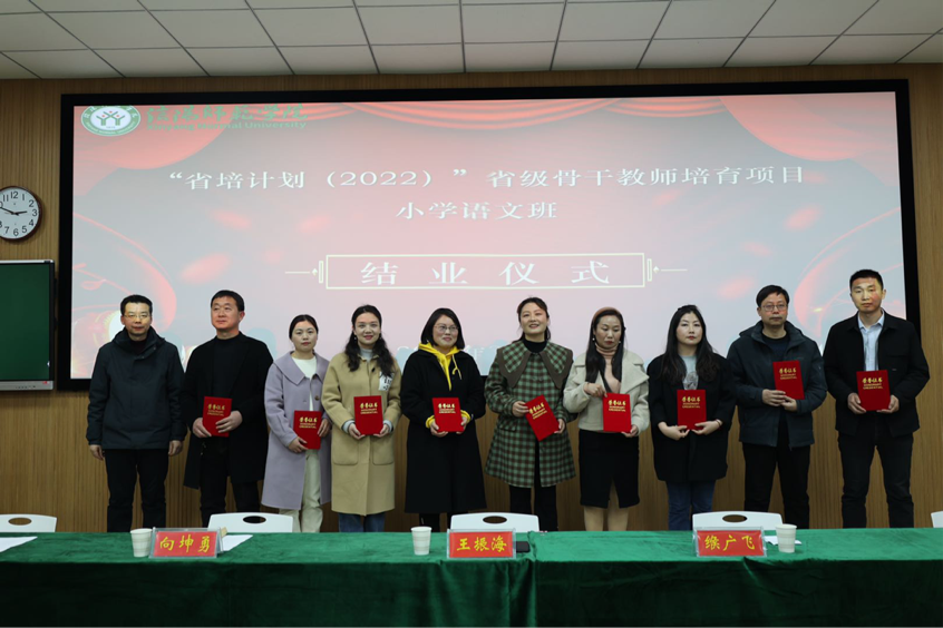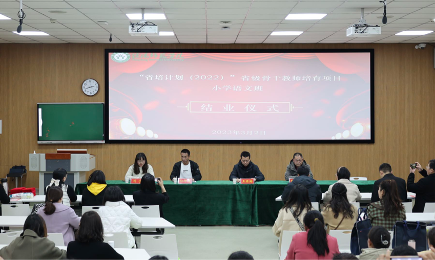 2023年3月2日下午,太阳成集团tyc151cc“省培计划”省级骨干教师培育项目小学语文班结业仪式于社科楼120成功举办。太阳成集团tyc151cc党委书记王振海,太阳成集团tyc151cc副院长缑广飞,潢川县教研室主任向坤勇出席会议。结业仪式由项目班主任刘宁主持。
