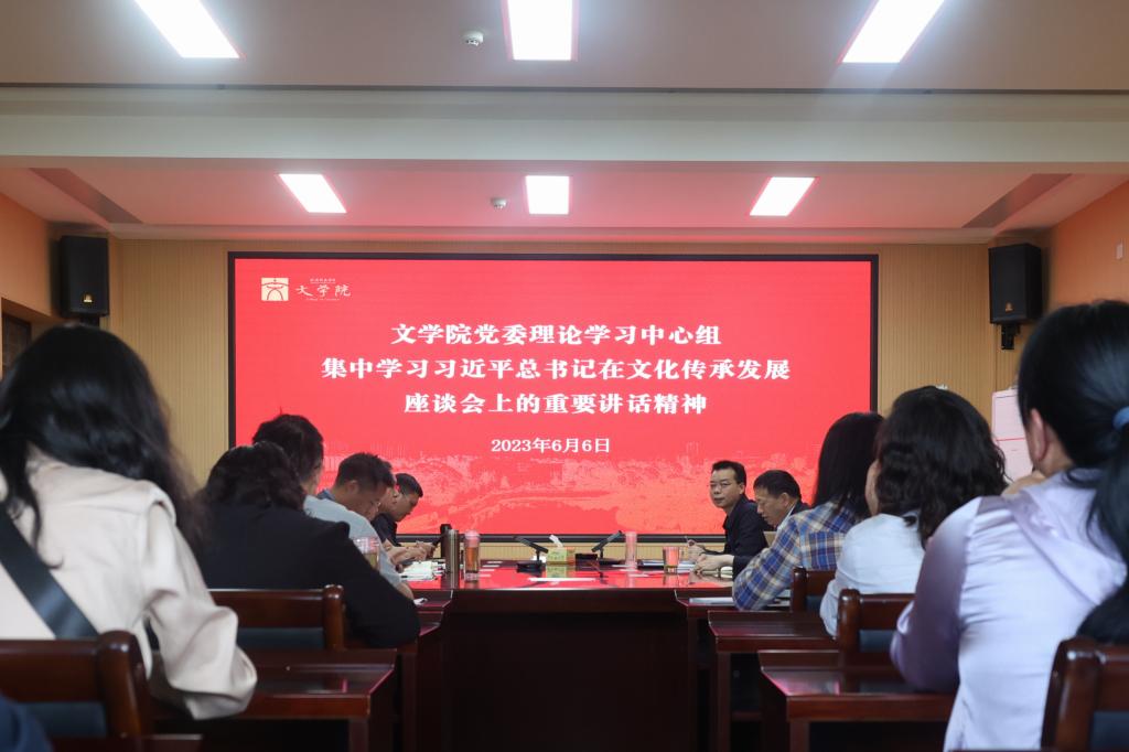 6月6日,太阳成集团tyc151cc召开党委理论学习中心组(扩大)会议,集中学习习近平总书记在文化传承发展座谈会上的重要讲话精神。太阳成集团tyc151cc领导班子成员和全体教职工参加。