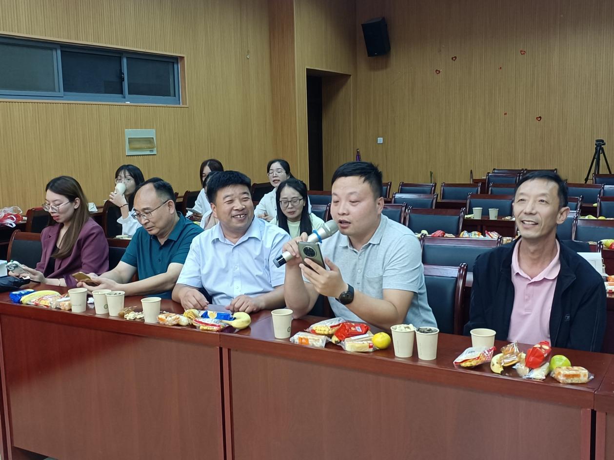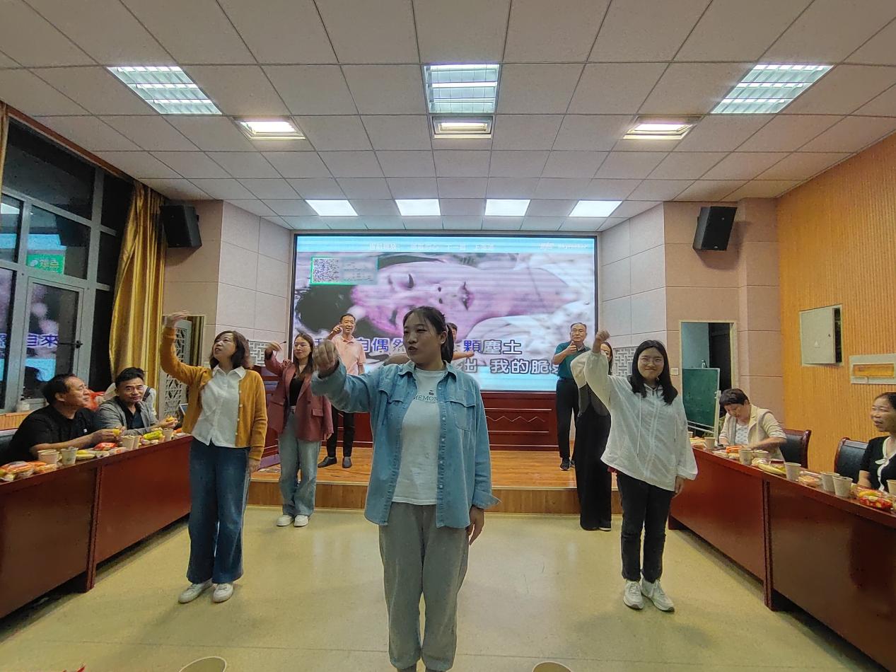 9月21日晚,“国培计划(2023)”省级骨干教师初中语文研修班文娱晚会在综合楼605室顺利举行。晚会由文娱班长刘永恒主持,培训学员、班主任及学生助理欢聚一堂,共同参与并观看此次晚会。