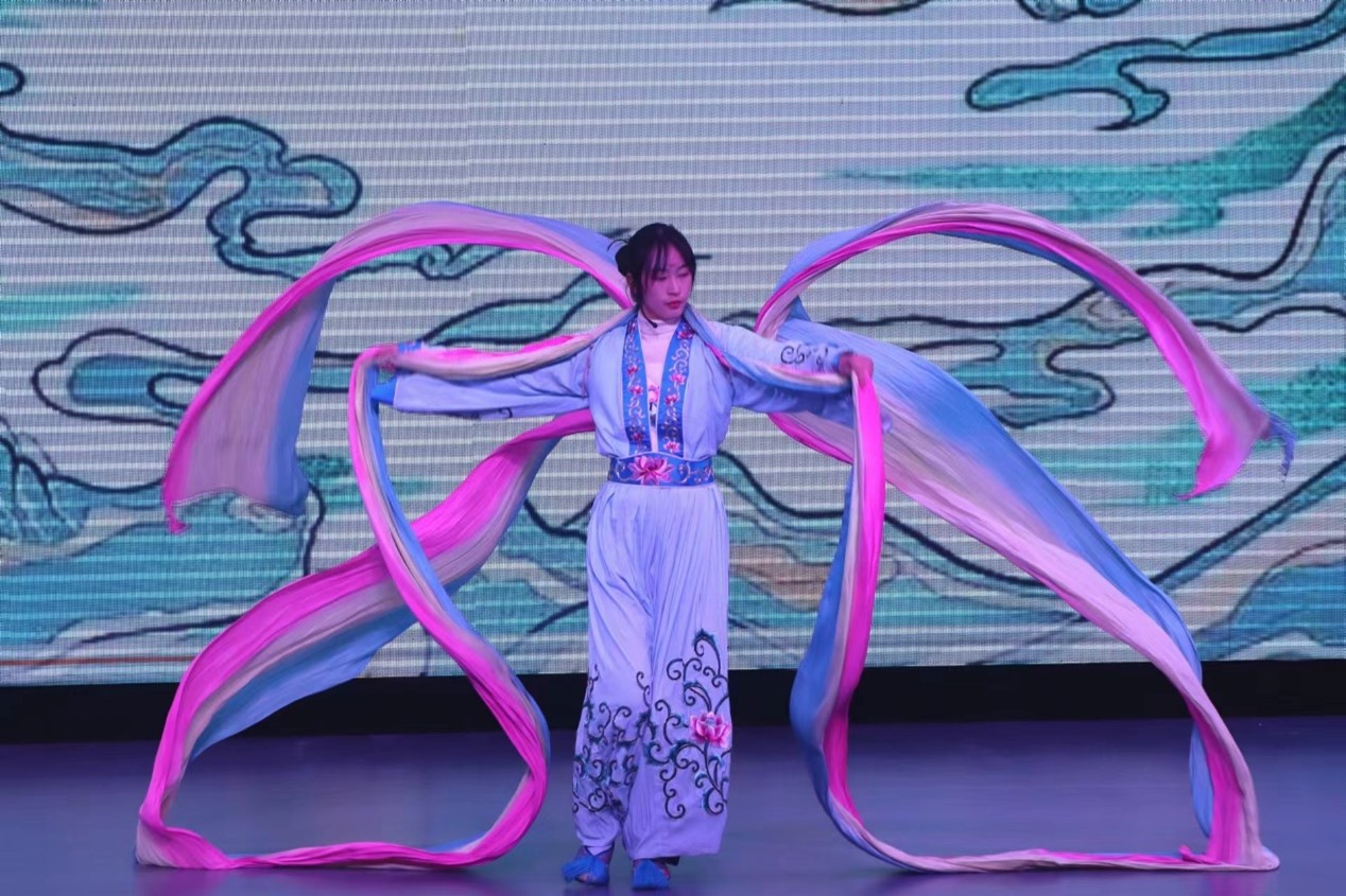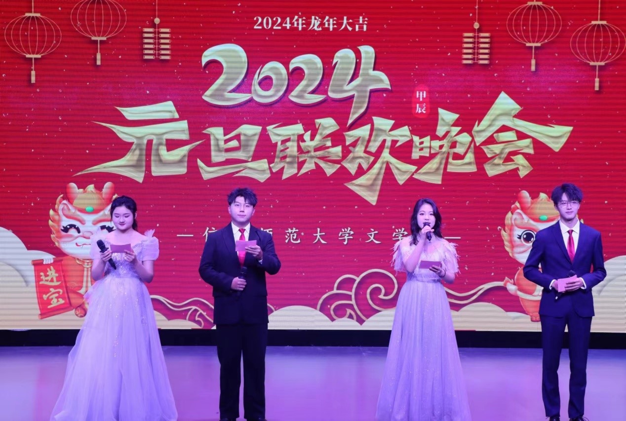 此次元旦联欢晚会分为抽奖和才艺表演两个环节。晚会才艺表演囊括了乐队演奏、小品、舞蹈歌曲、戏曲、武术表演、影子戏等多种艺术形式,为观众带来了一场彰显文院学子青春风采的视听盛宴。开场由可燃冰乐队带来的《红色高跟鞋》《爱人错过》和文艺团带来的舞蹈《Queencard》展示了当下时代潮流的领衔风尚,表现出青春年少的悦动,释放了青春的热情与魅力;晨曦话剧社的小品《开不了口》展示了父女之间爱在心头口难开的亲情,让观众真切感受到父爱如山海,无声却胜有声;由陈慧娴等三位同学带来的戏曲表演《孽海记·思凡》、《天女散花》和《南阳关》在创新传承中展现出中华文明的蓬勃生命力与非凡感染力;远方文学社的影子戏《破晓》凸显了作为中国青年应有的政治意识和家国情怀,抒发了强烈的爱国主义情感;最后全体表演人员以一曲《相亲相爱》大合唱表达了对来年的美好愿景。