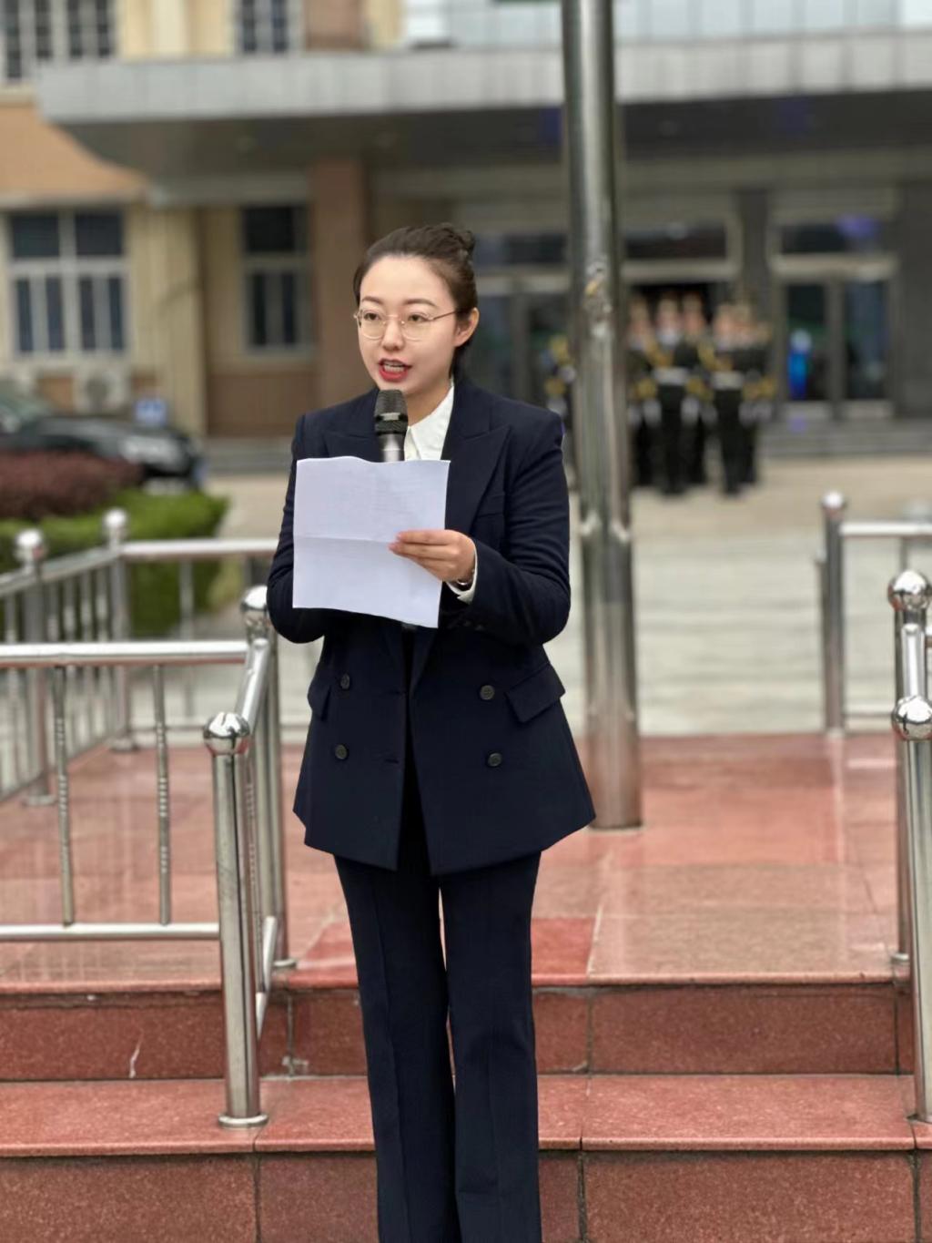 4月8日6点,太阳成集团tyc151cc于行政楼前举行升旗仪式。党委副书记王家宏、武装干事陈辉、辅导员郭子悦及太阳成集团tyc151cc2023级部分新生参与了此次活动。