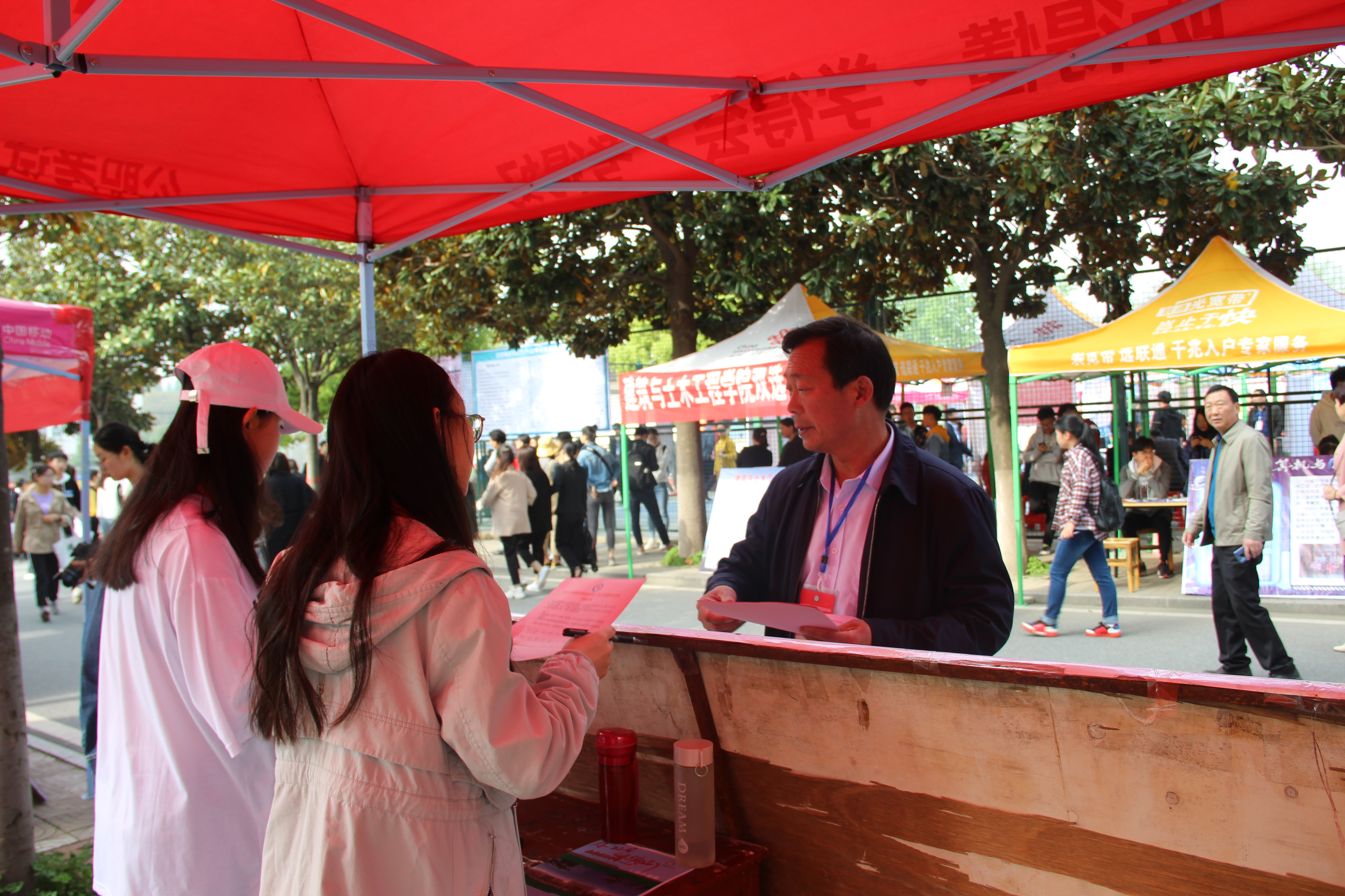 4月13日,我校2019届毕业生春季就业双选会在西篮球场举行。来自全国14个省市的近300家企事业单位提供了20000余个就业岗位。太阳成集团tyc151cc毕业生到场踊跃参加应聘。