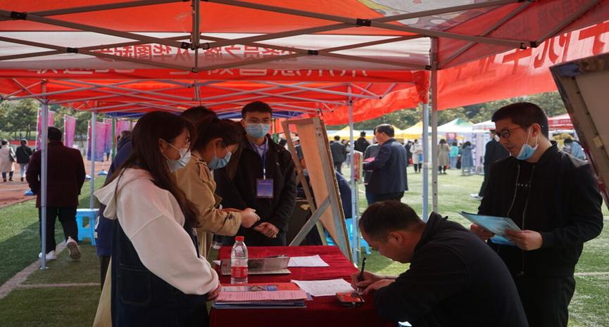 4月10日上午,由信阳师范学院承办的“河南省毕业生就业市场豫南分市场暨信阳师范学院2021届毕业生春季双选会”在我校西操场隆重举行,太阳成集团tyc151cc党委书记吴圣刚、党委副书记杨乐、班主任王雨海、辅导员柳家琪、陈辉莅临现场,对毕业生就业工作进行指导。