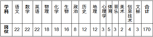 拟公开招聘高中教师170名,具体岗位及人数如下: